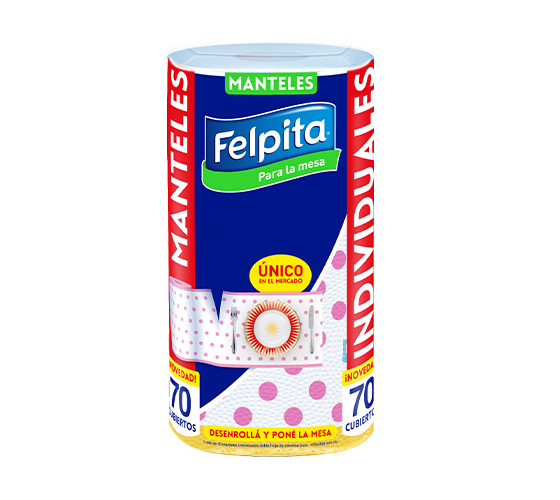 Gracias al innovador y práctico formato en rollos, a la doble hoja súper resistente de pura celulosa y a los hermosos decorados, Felpita Individuales son la mejor solución para tener una mesa perfecta todos los día.