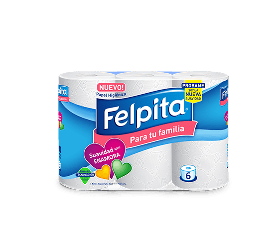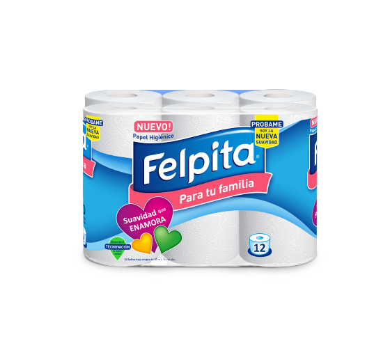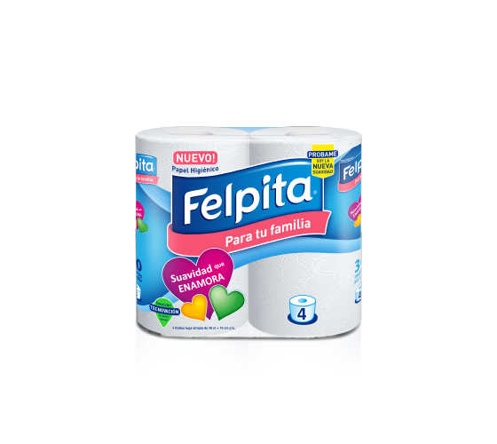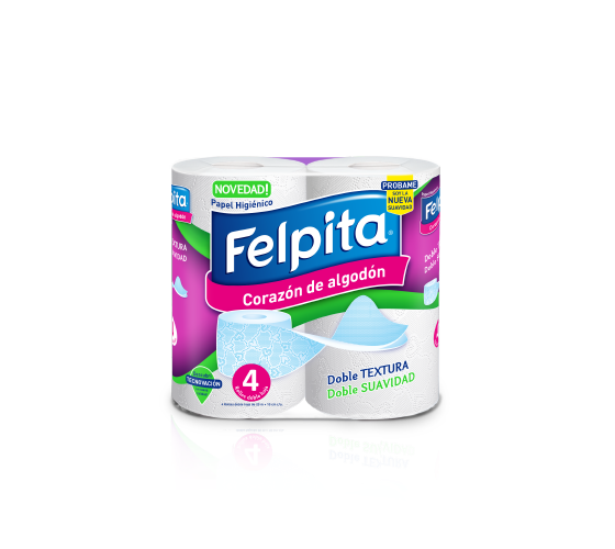 Felpita Corazón de Algodón, un nuevo formato estudiado para satisfacer aún más las exigencias de la familia, un producto de calidad, accesible a todos. Especial doble gofrado que hace el papel higiénico más suave y delicado.
