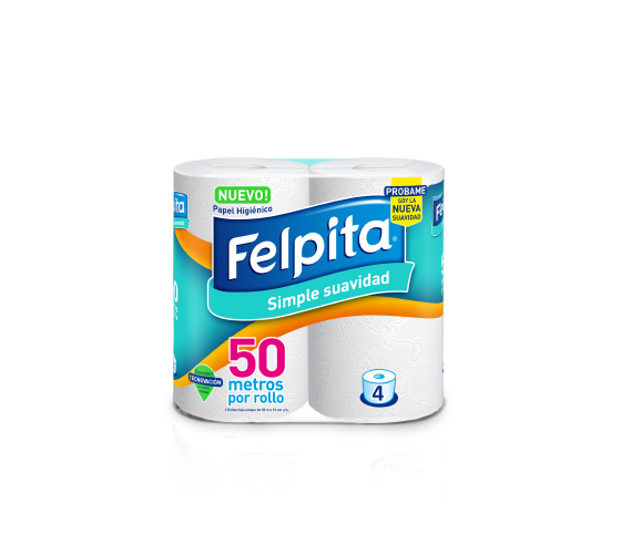 Felpita Simple Suavidad es el nuevo papel higiénico simple hoja realizado con materias primas seleccionadas en rollos de 50 metros. Un producto nuevo destinado a consumidores exigentes, atentos a la calidad.