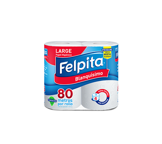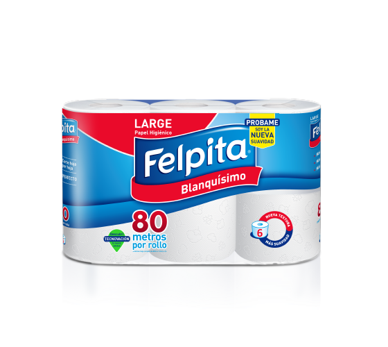 Felpita Blanquísimo es el papel higiénico hoja simple microgofrado más blanco del mercado en rollos de 80 metros, que conquista a los consumidores atentos a la pureza de los productos para la higiene personal.